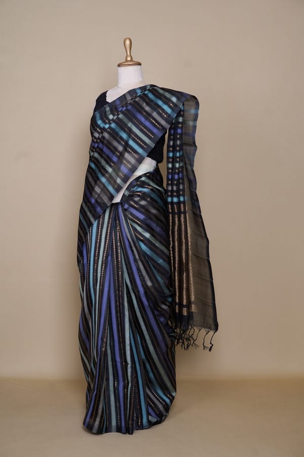Black Multi Stripe South Kora Silk Saree – House of Samaa