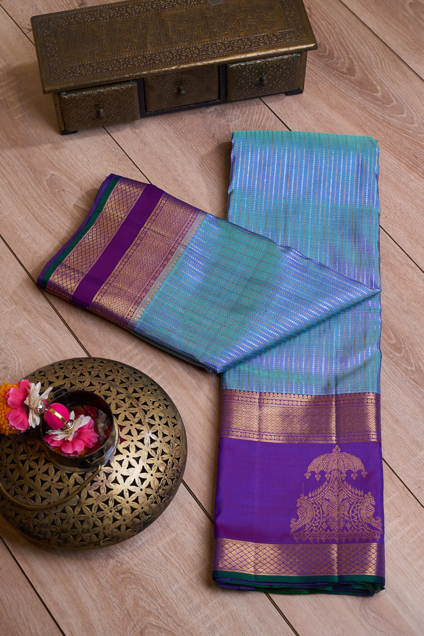 Blue Emraled With Majanta Border South Silk Saree – House of Samaa