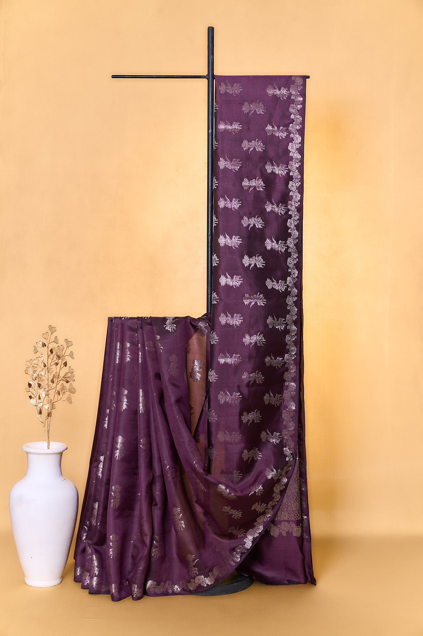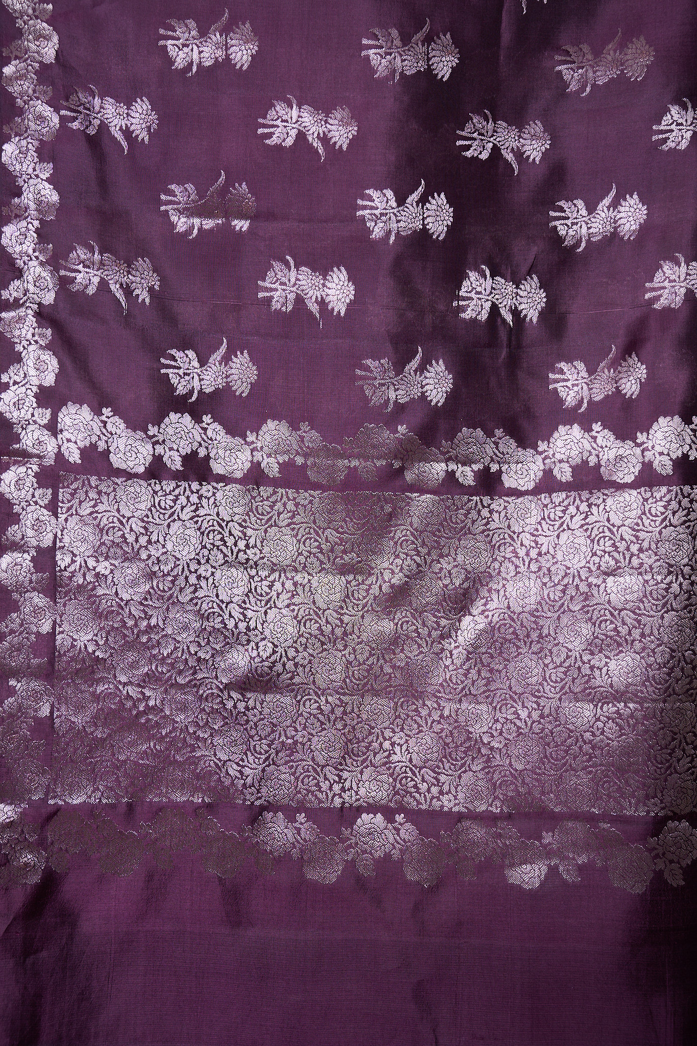 Cream With Maroon Pallu Border Gadhwal Silk Saree
