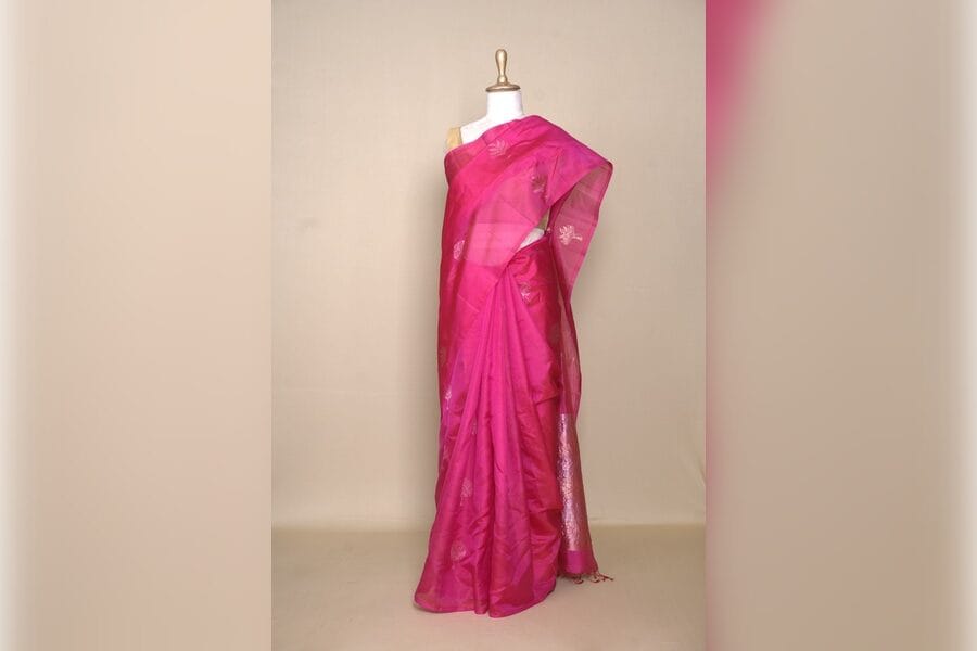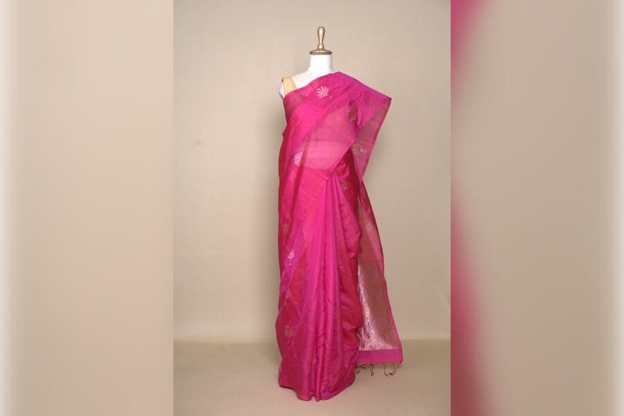 Pyrite Crush Tissue Red Banarasi Georjette Meenakari Pallu Border Bandhi Blouse Signature Saree