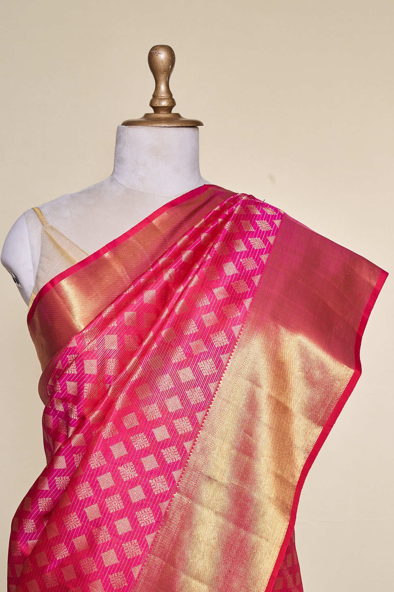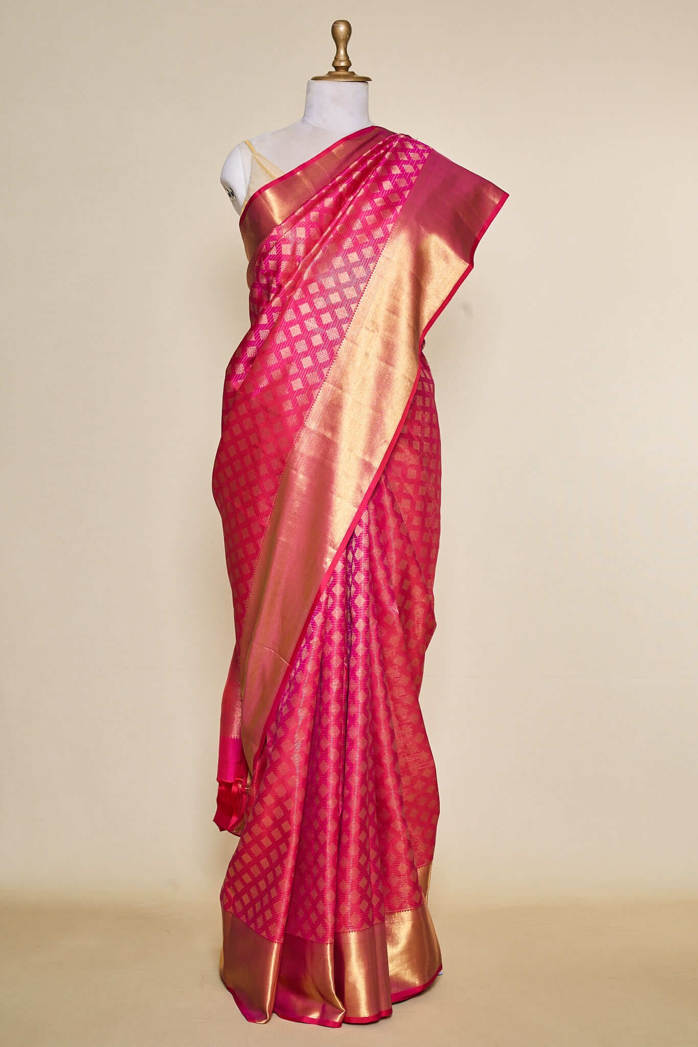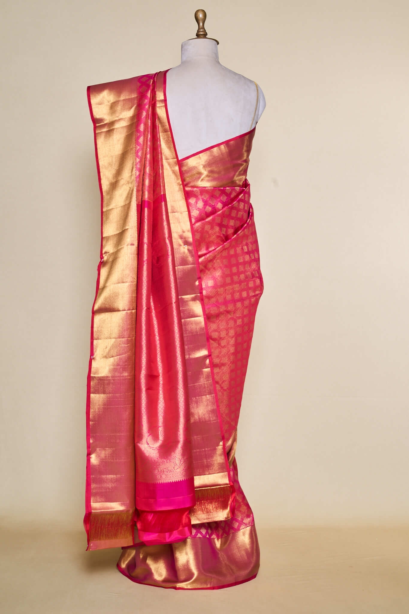 Pinkish Golden Kanjivaram Tissue Saree
