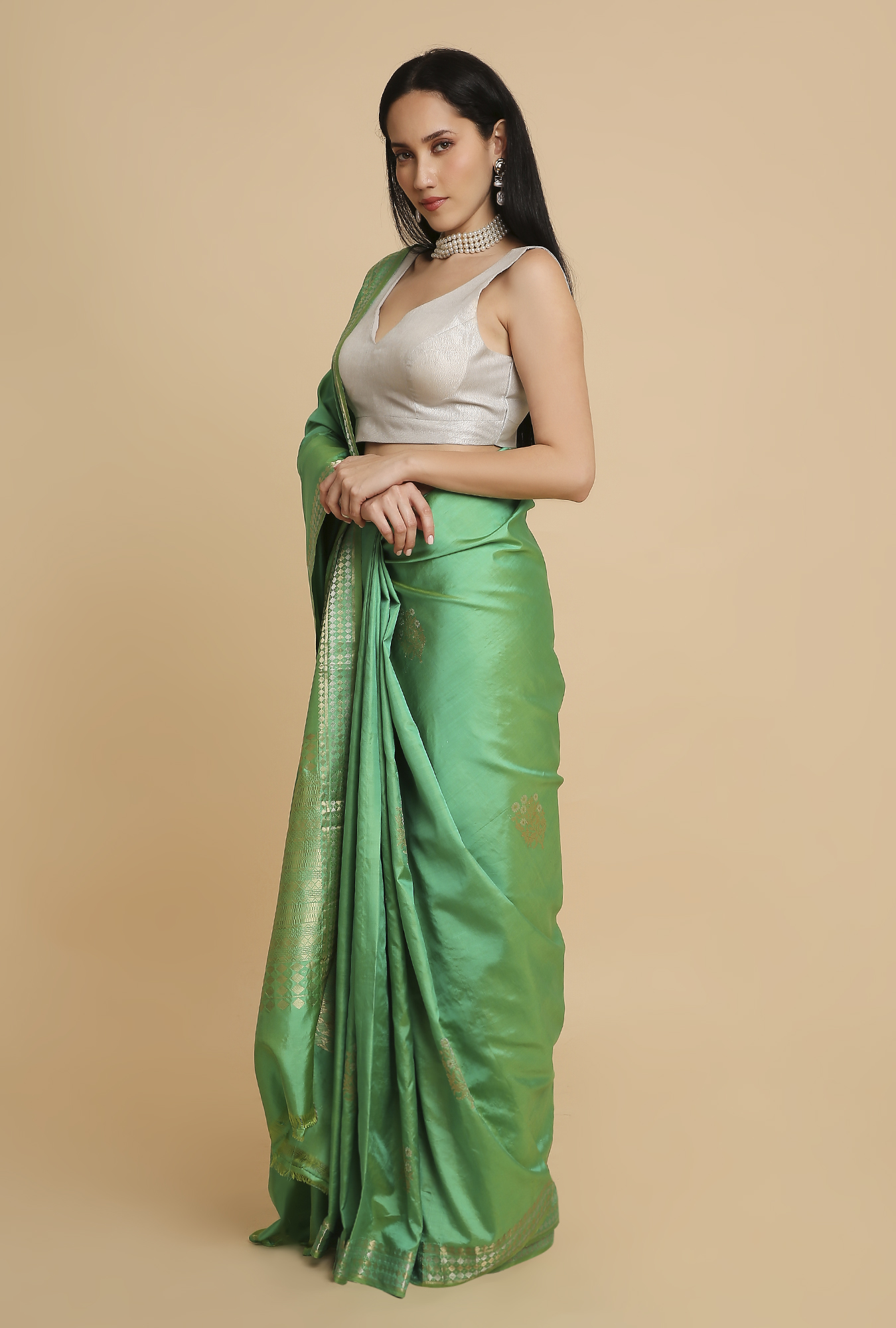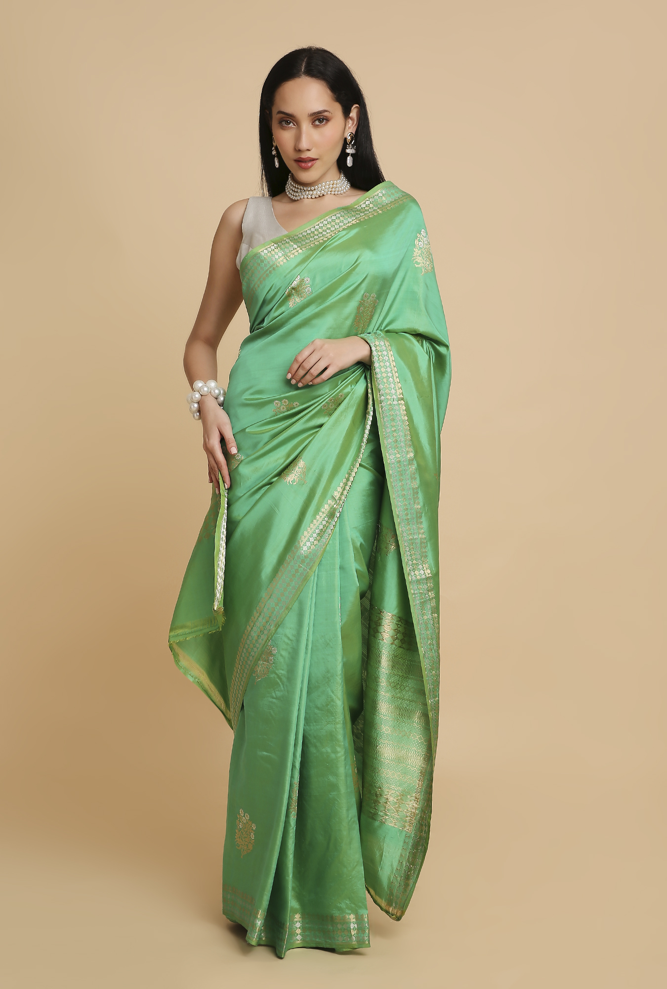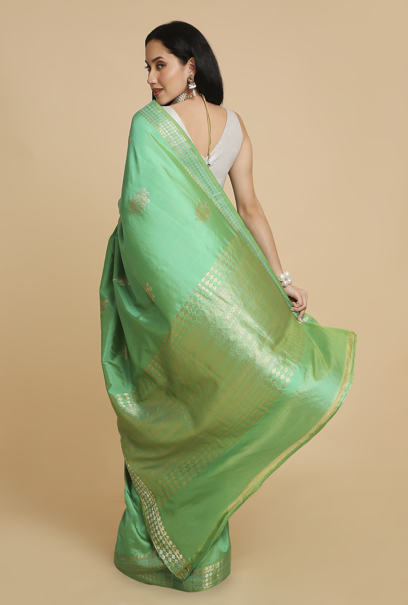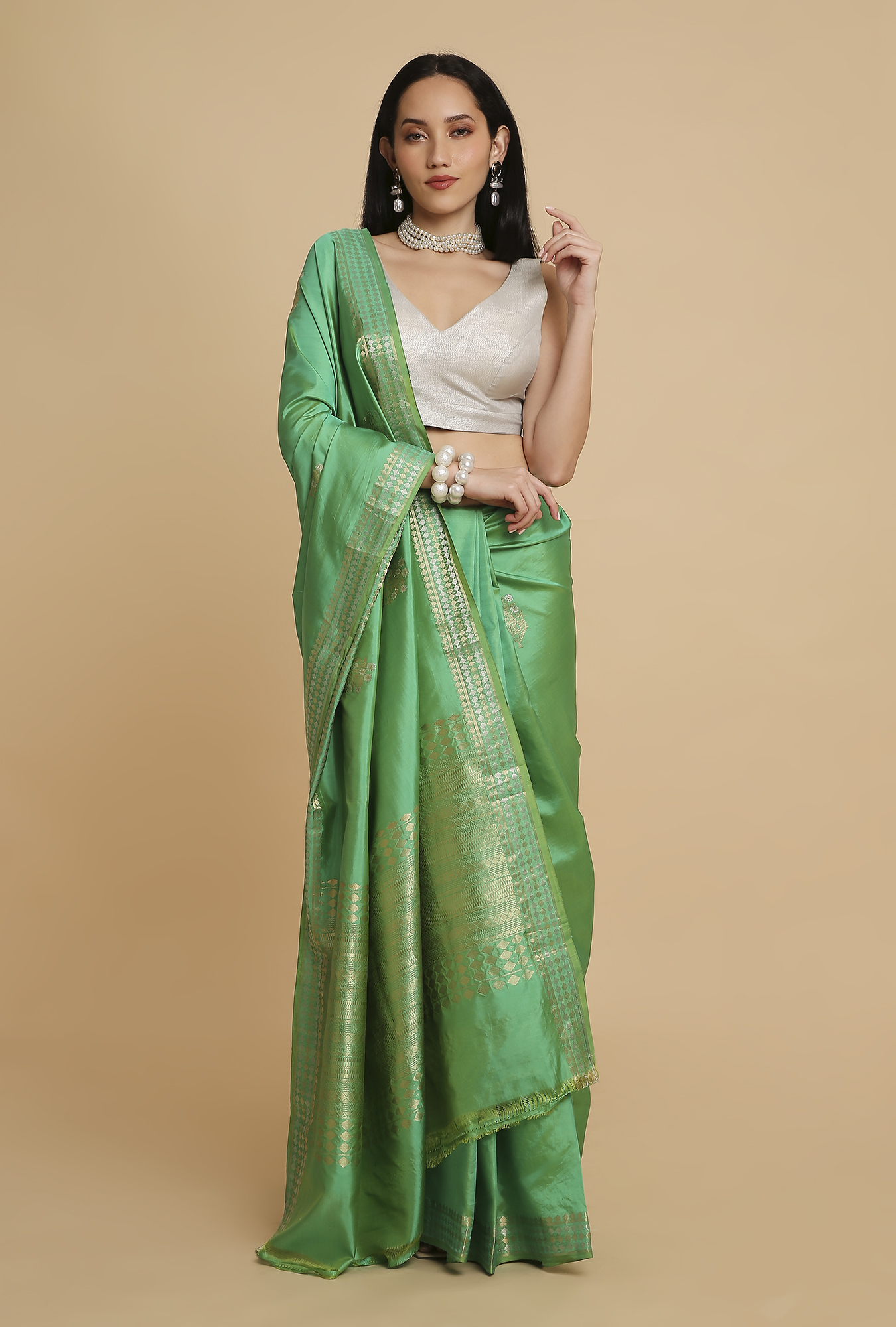 Gentle Green Puna Silk Saree – House of Samaa