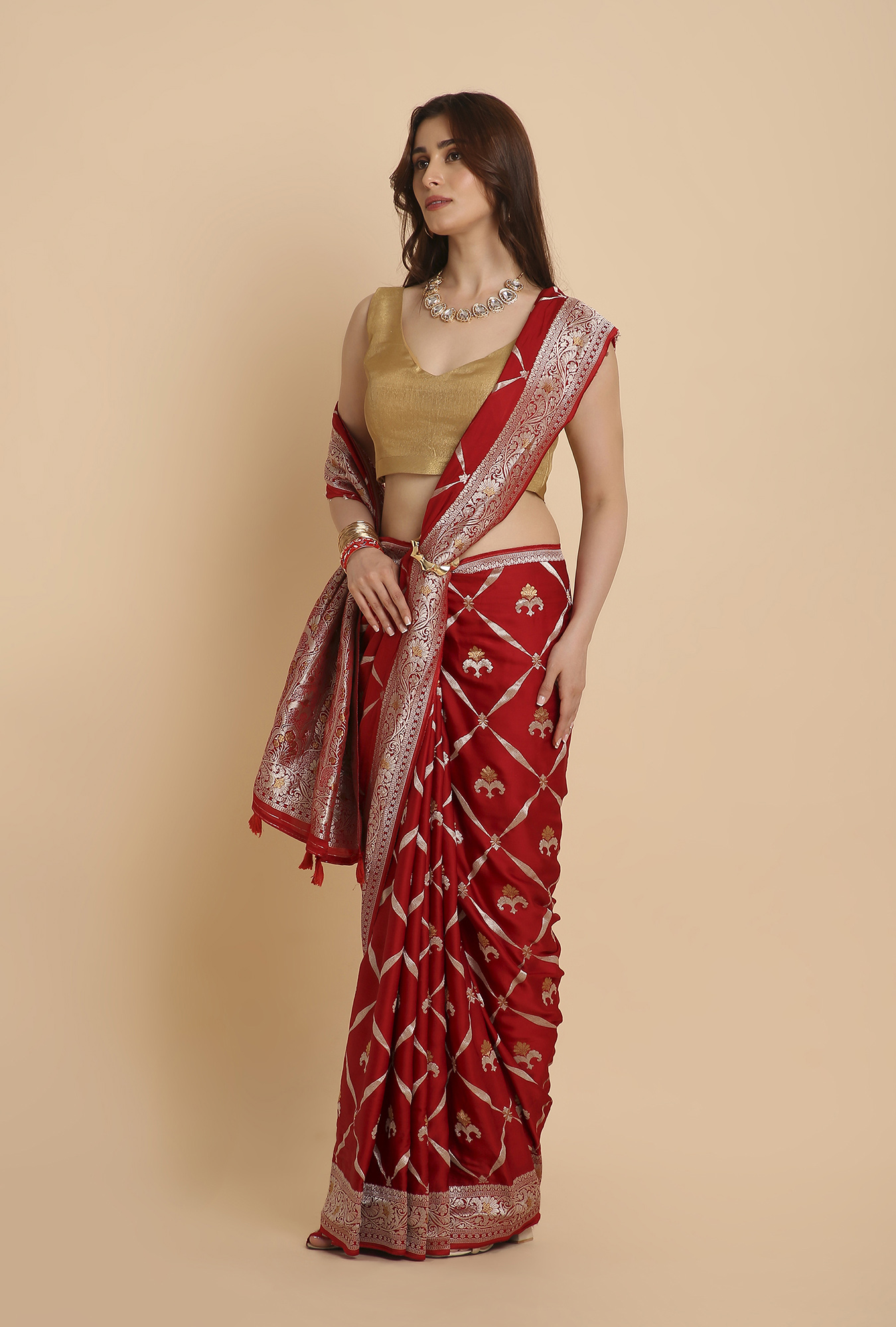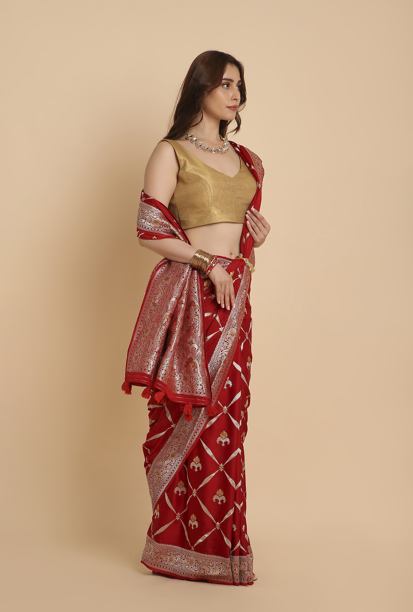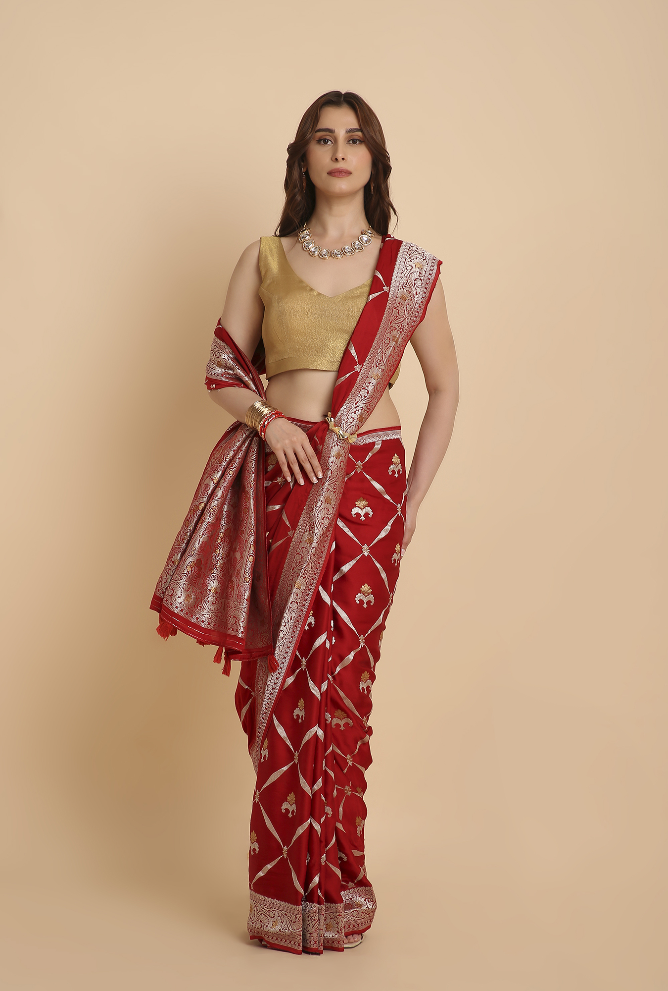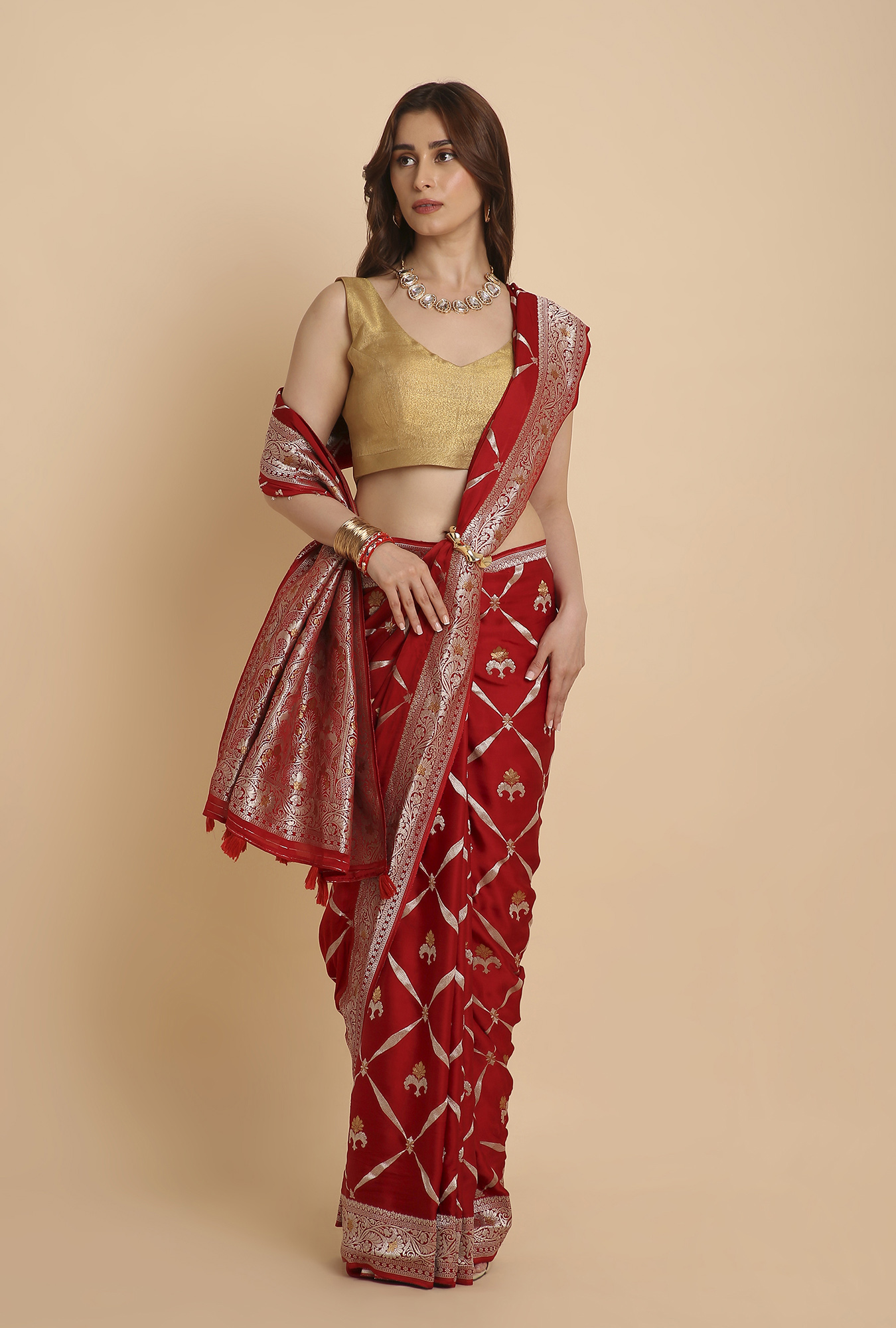 Rose Gold Crush Tissue with Banarasi Georgette Bandhani Pallu & Border Signature Silk Saree
