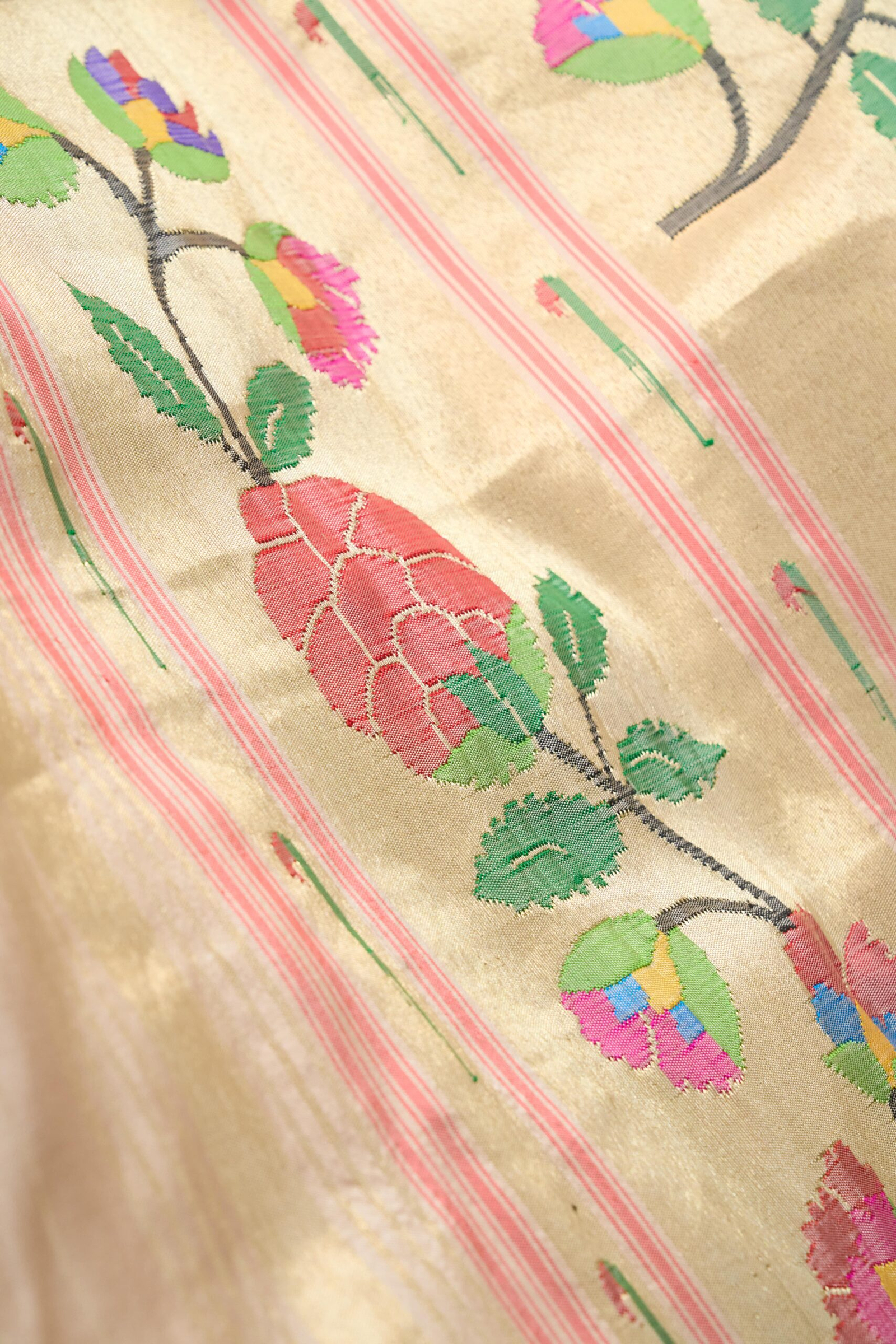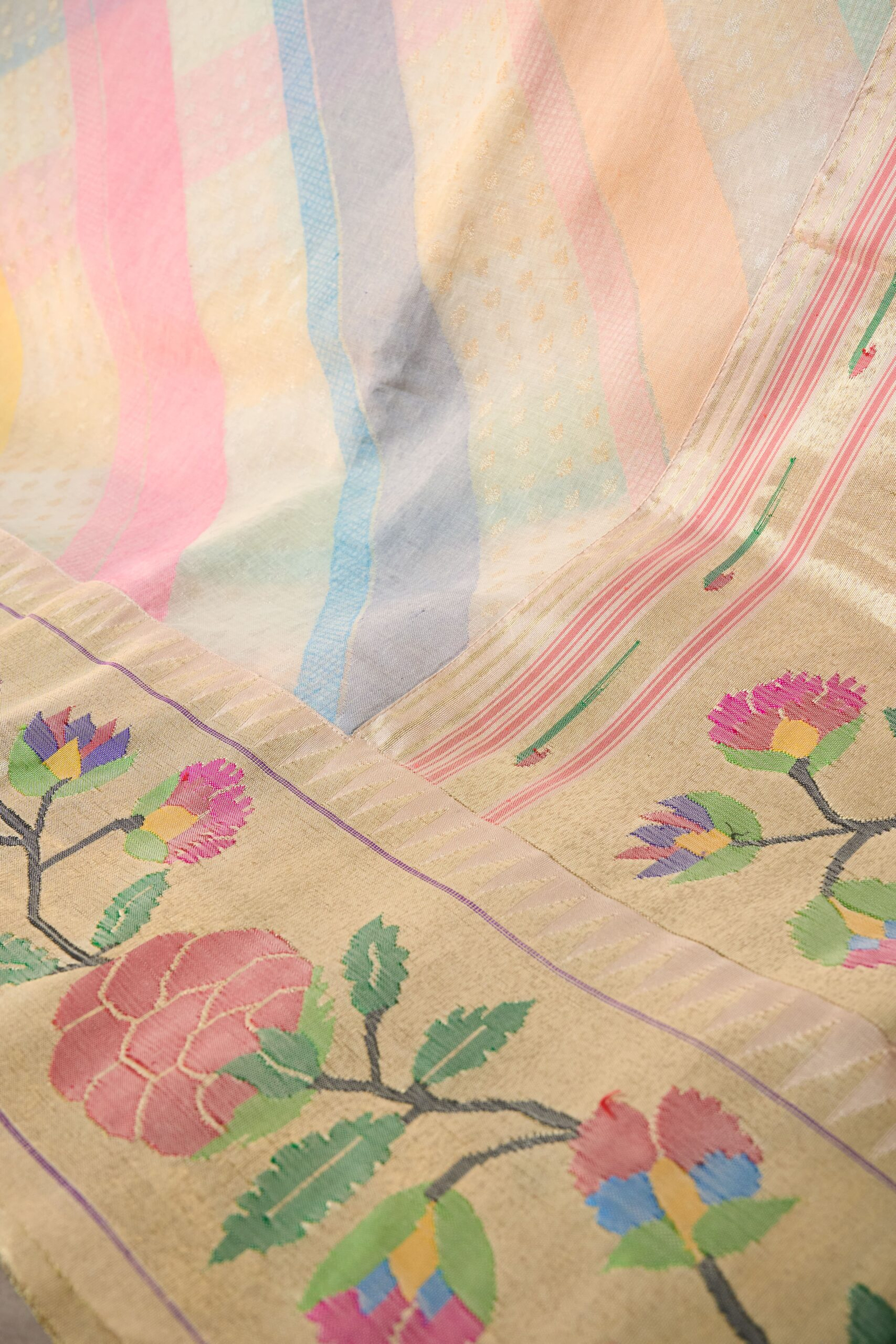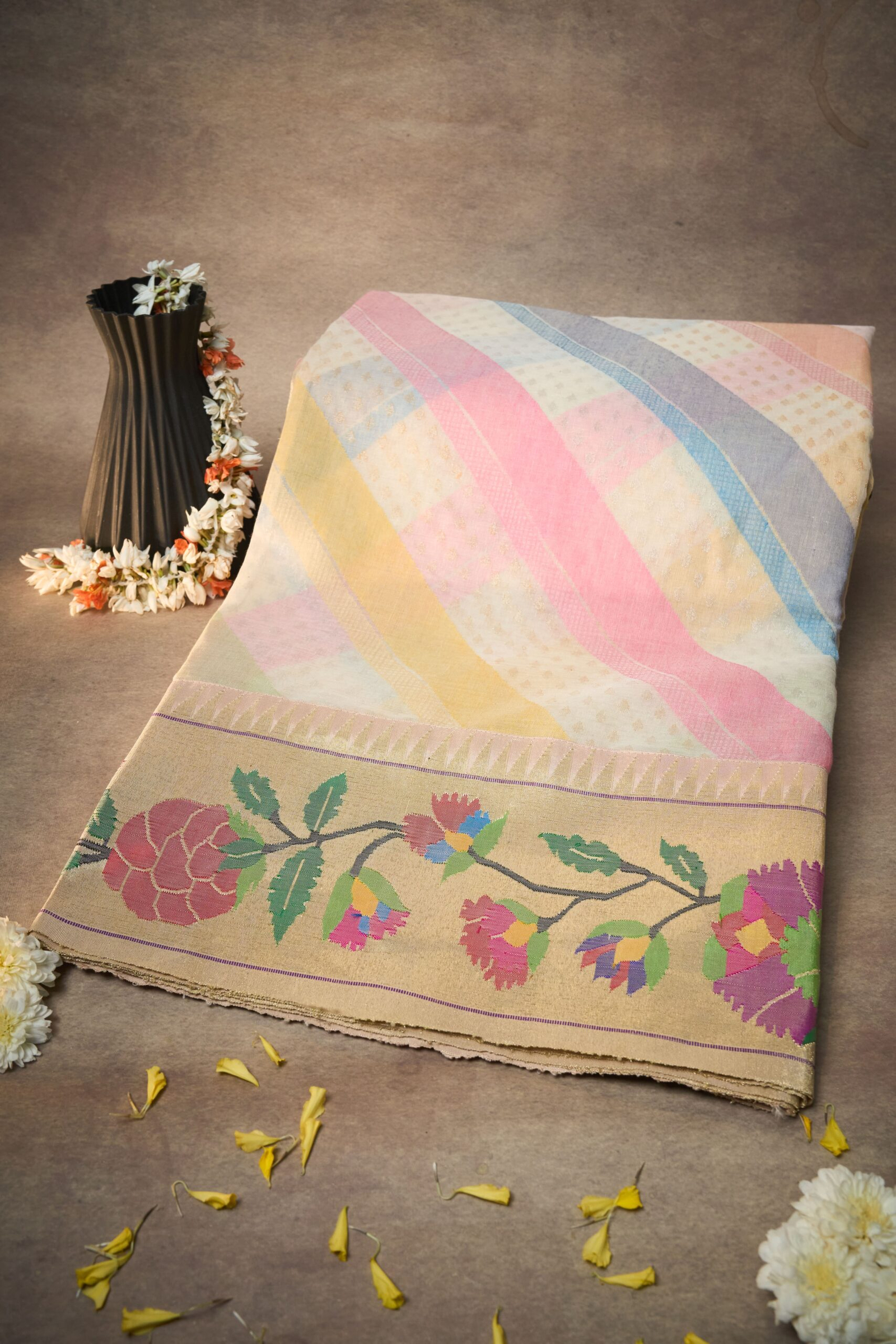 Gold Silver Stripe Shoulder Pallu and Chex Signature Saree