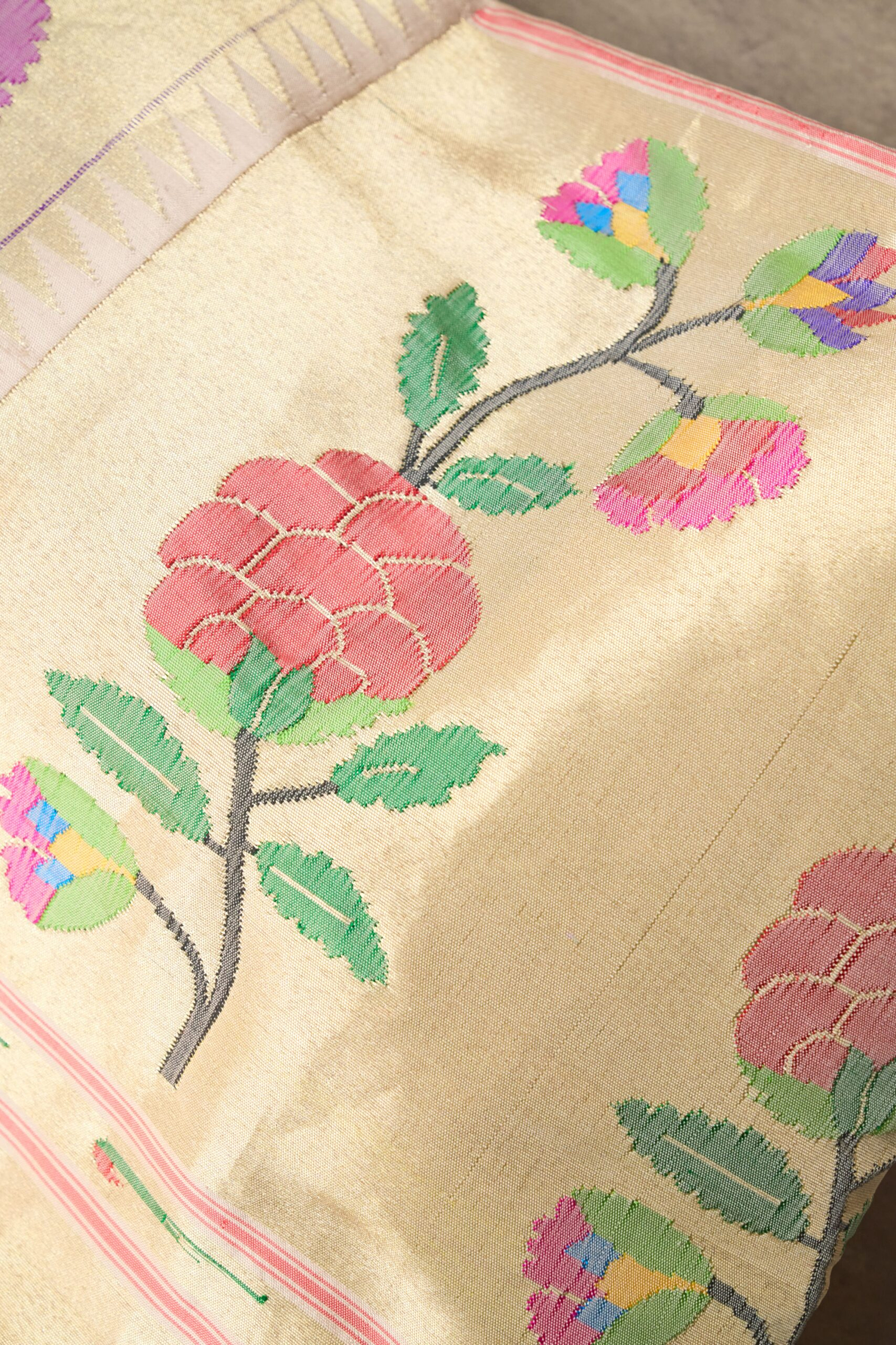 Cream With Maroon Pallu Border Gadhwal Silk Saree