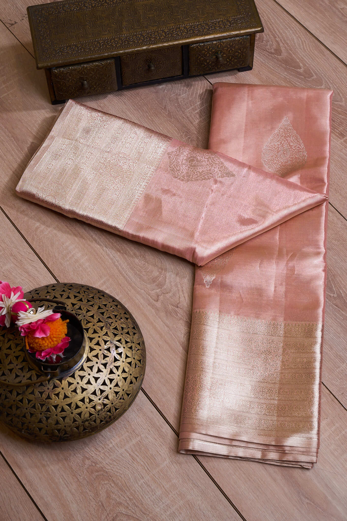 Pista Green Mehendi Tri Colour South Kora Silk Saree