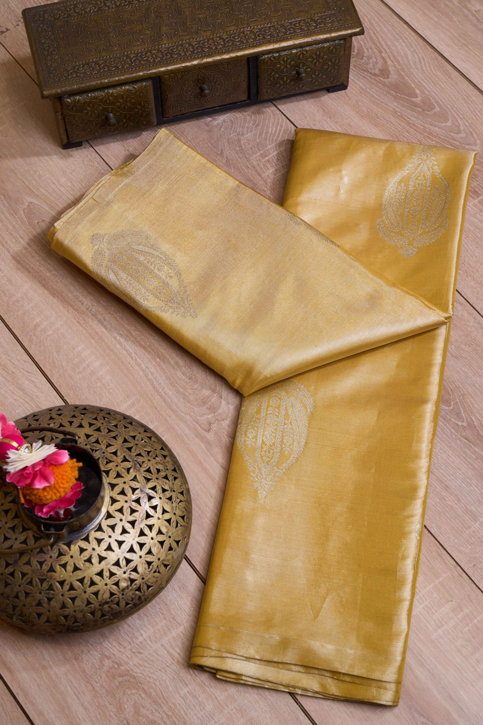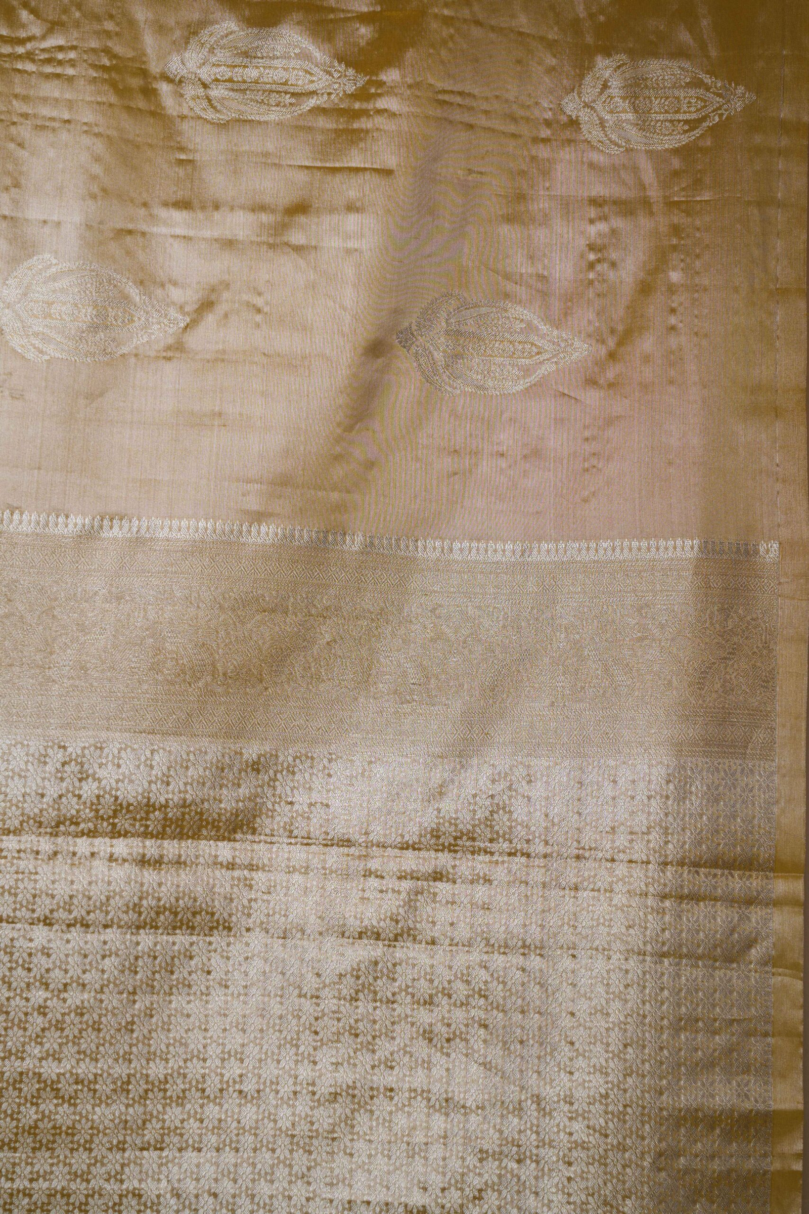 Khadi Colour With Golden Stripe Tussar South Silk Saree
