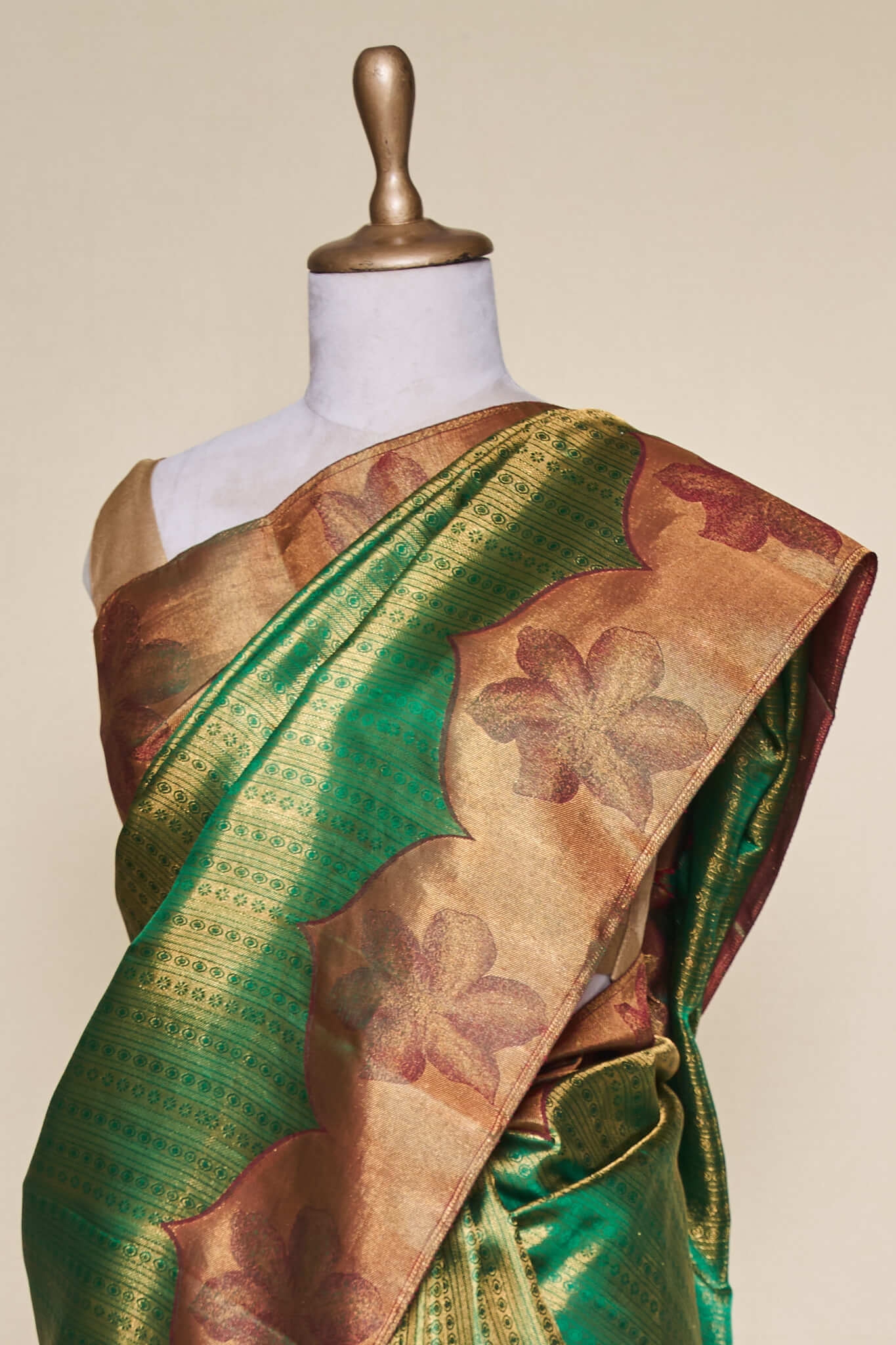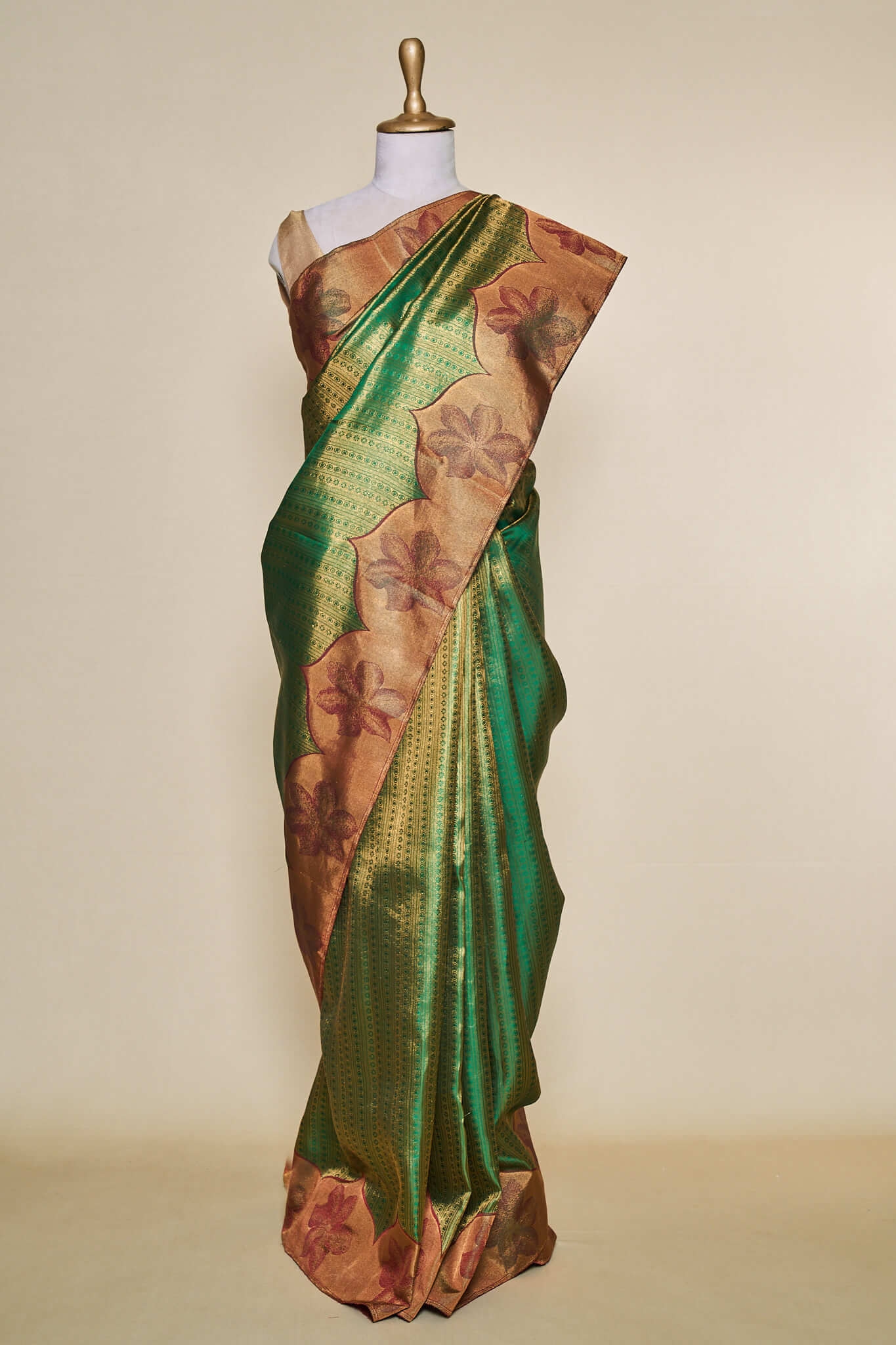 Parrot Green Kanchipuram Silk Saree with Brinjal Border