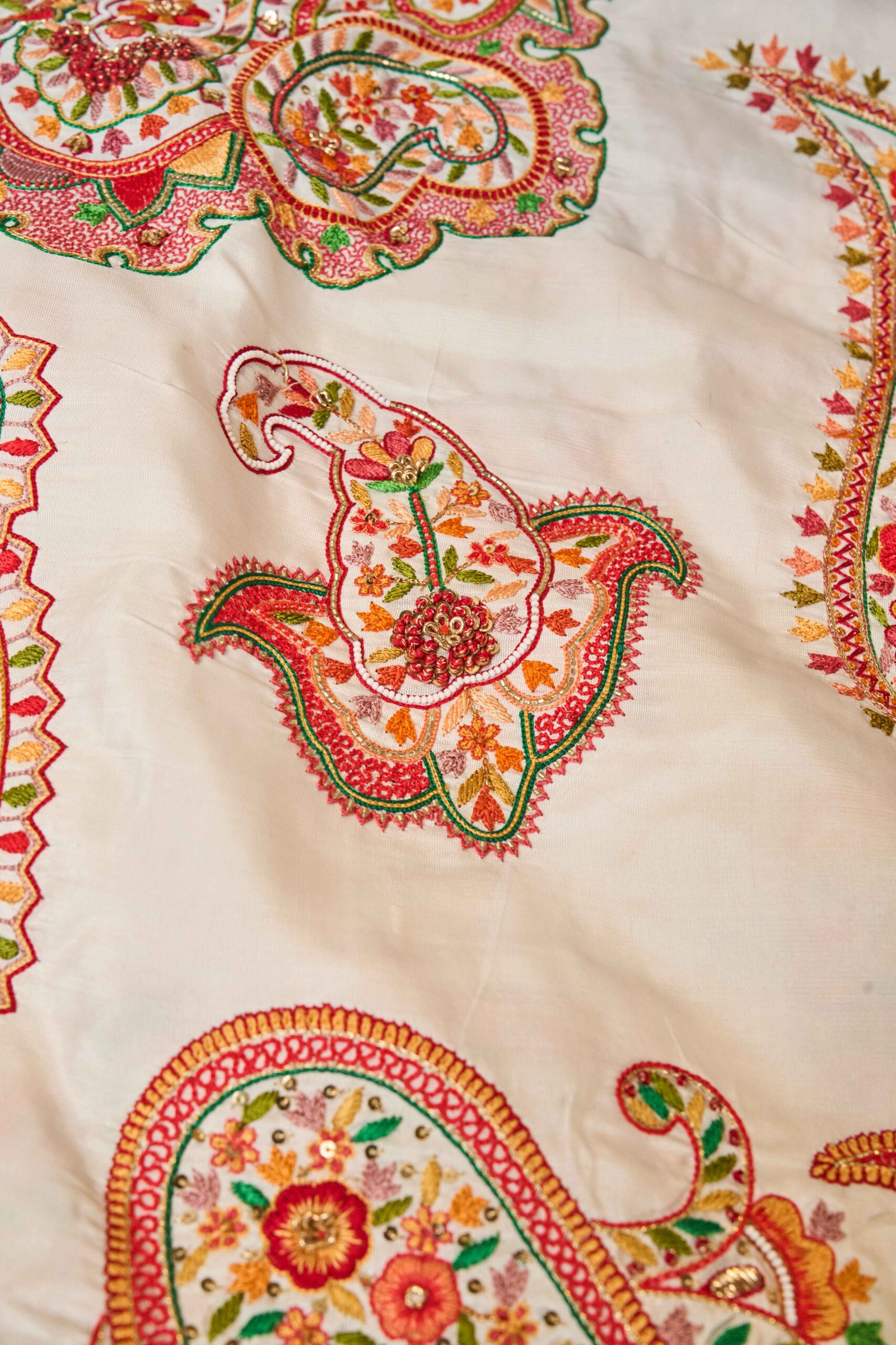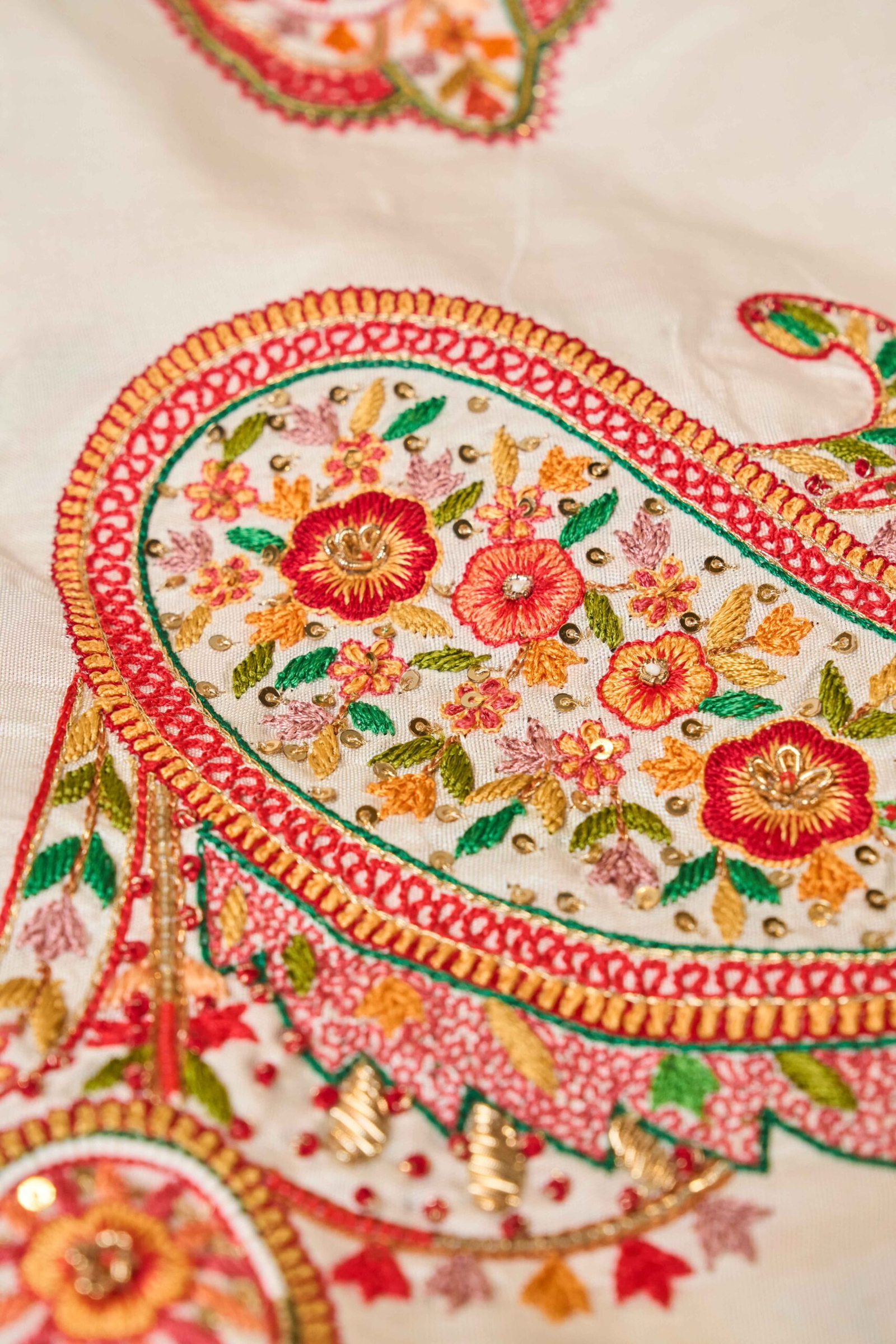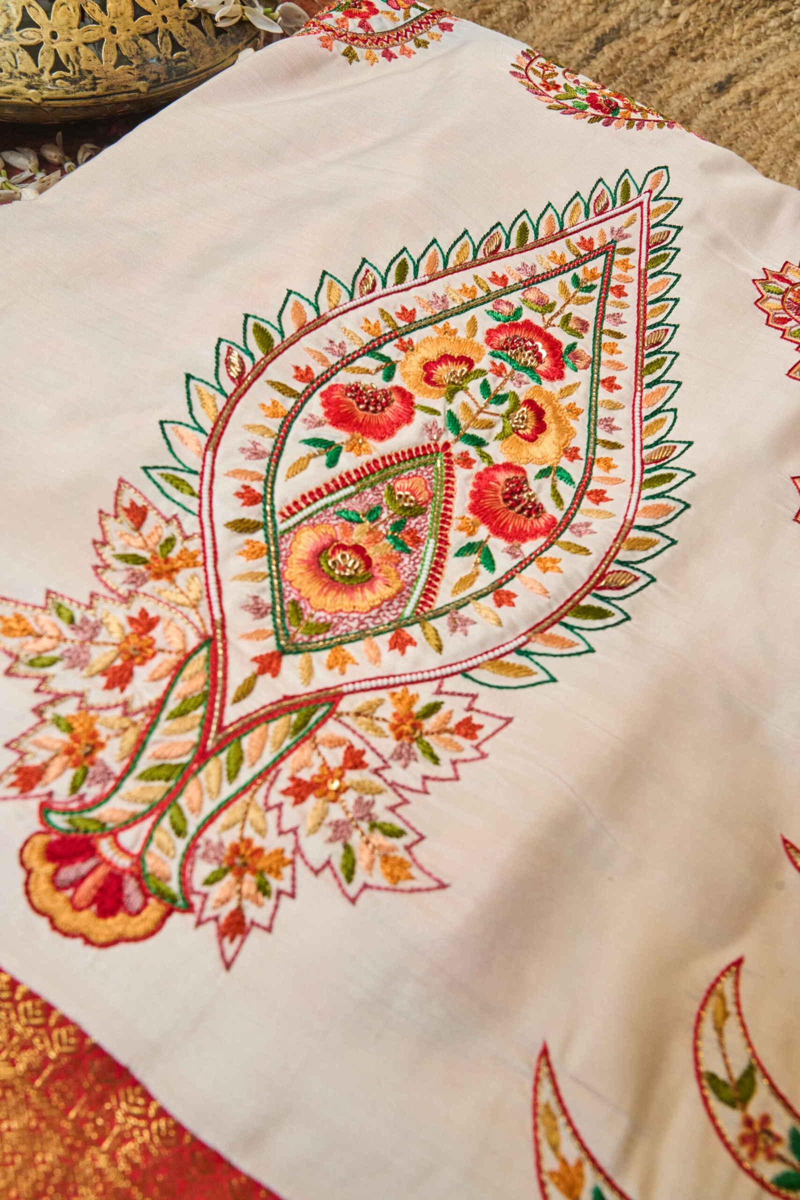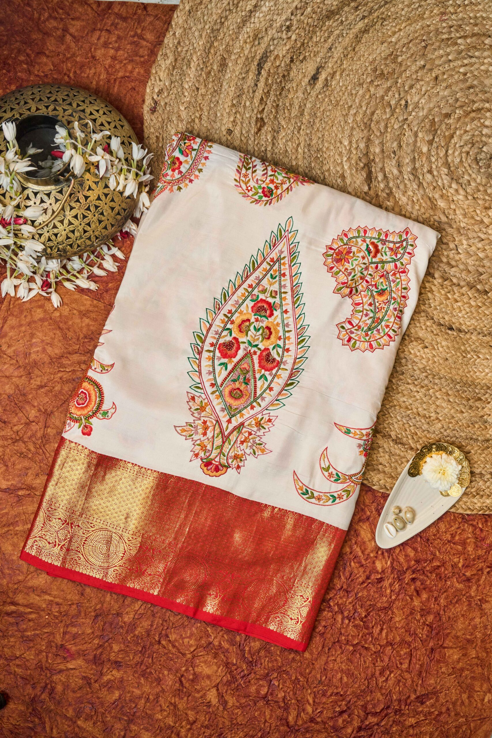 Off-White Kanjivaram with Kashmiri Handwork Signature Silk Saree