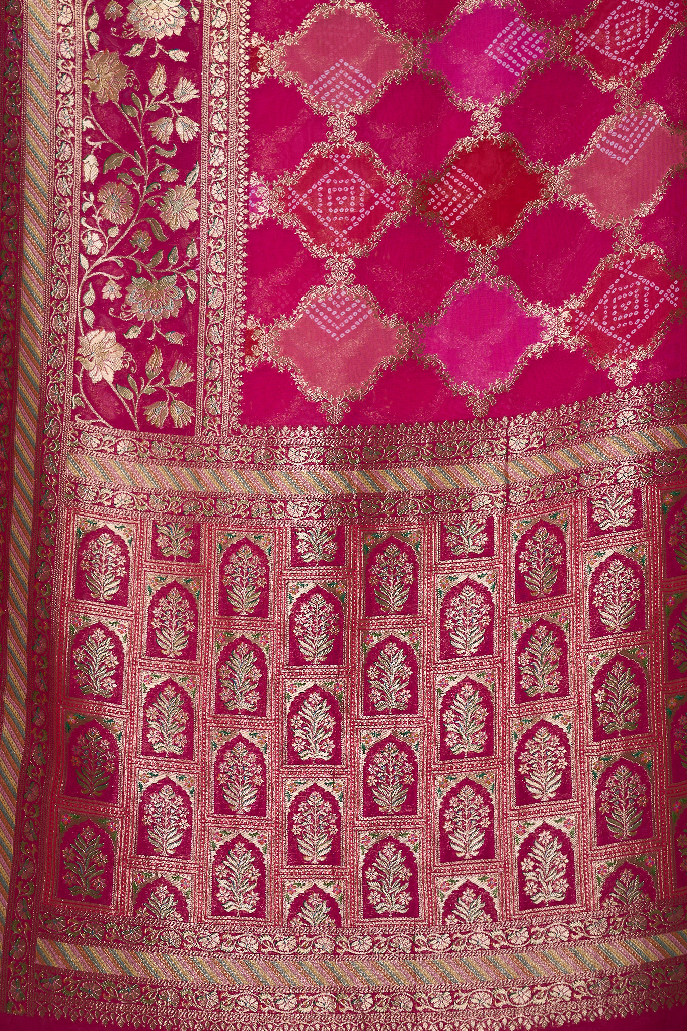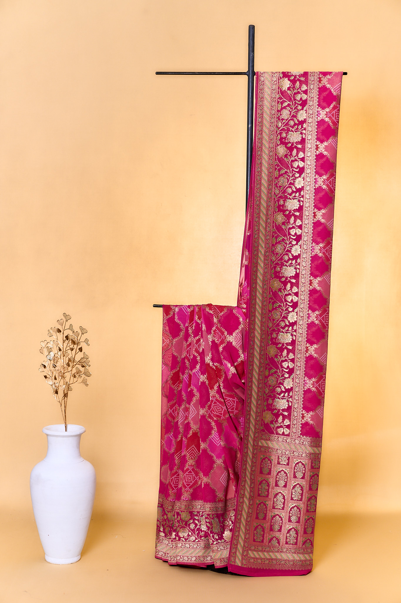 Black And White Chex With Pink Pallu Gadhwal Silk Saree