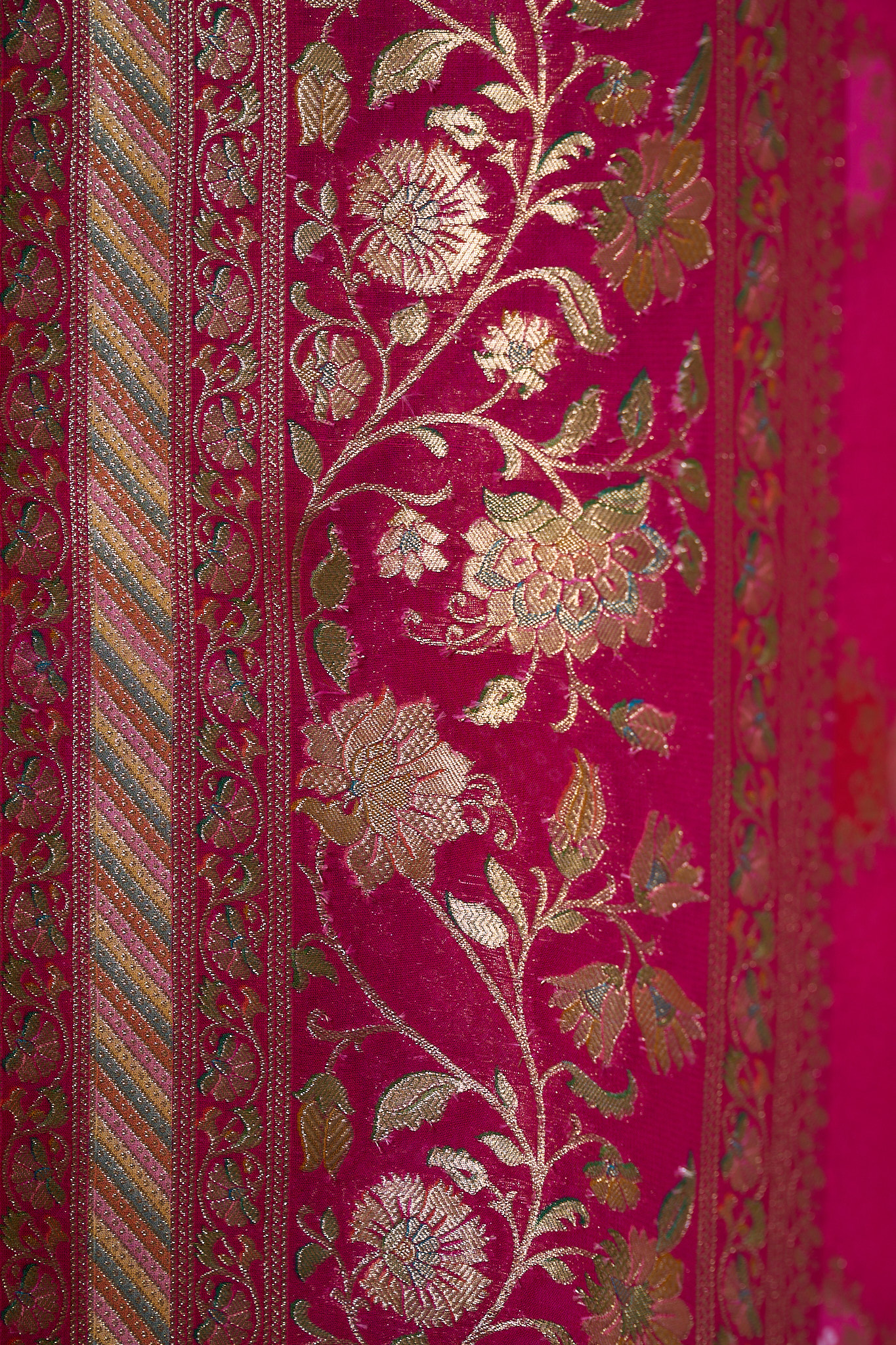 Gold Silver Chex Pallu Shoulder Striped Signature Saree