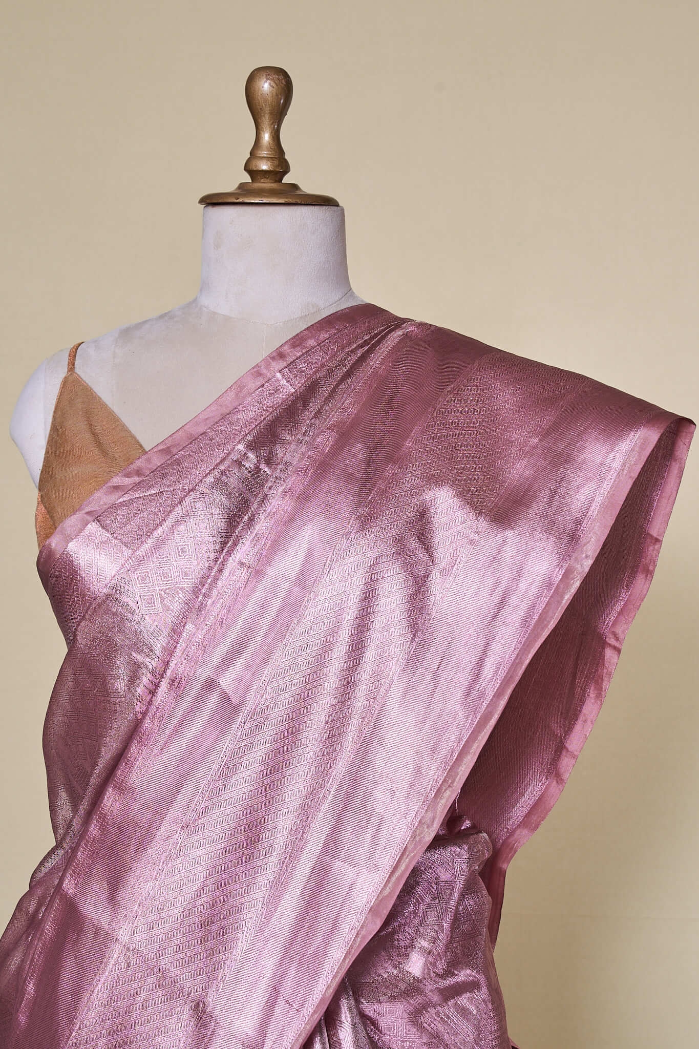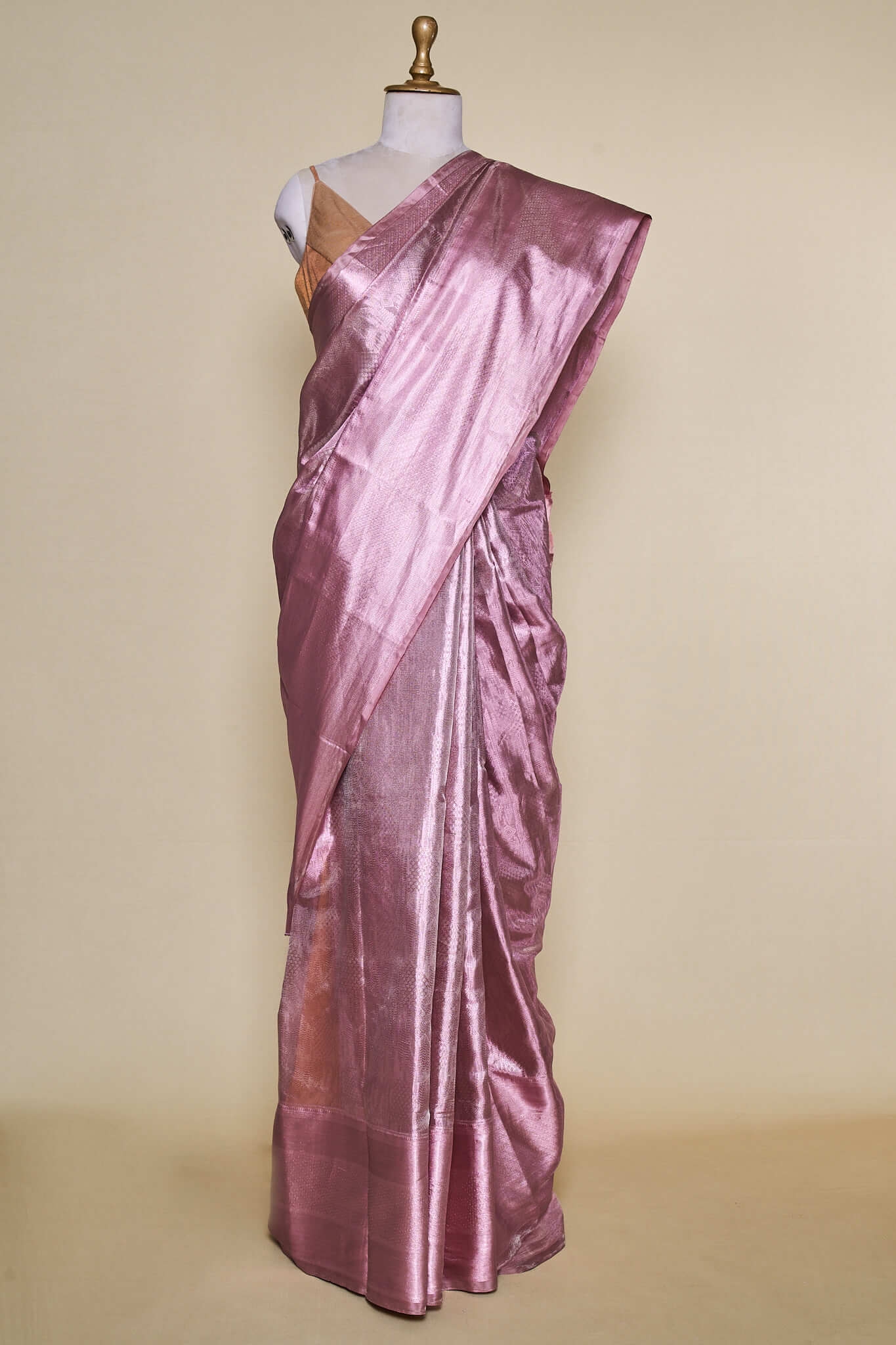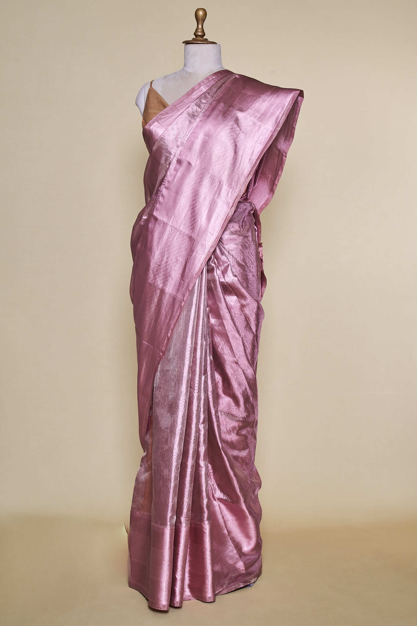 Rose Gold Kanchipuram Silk With Rose Gold Zari Saree – House of Samaa