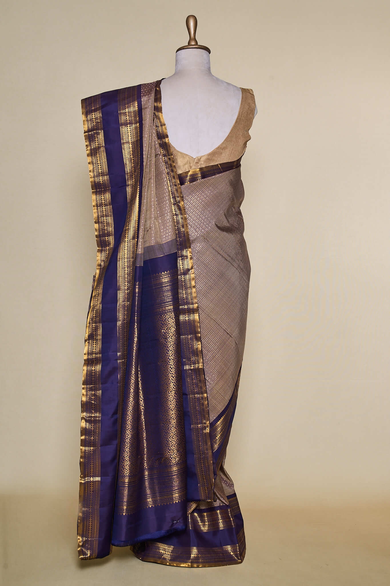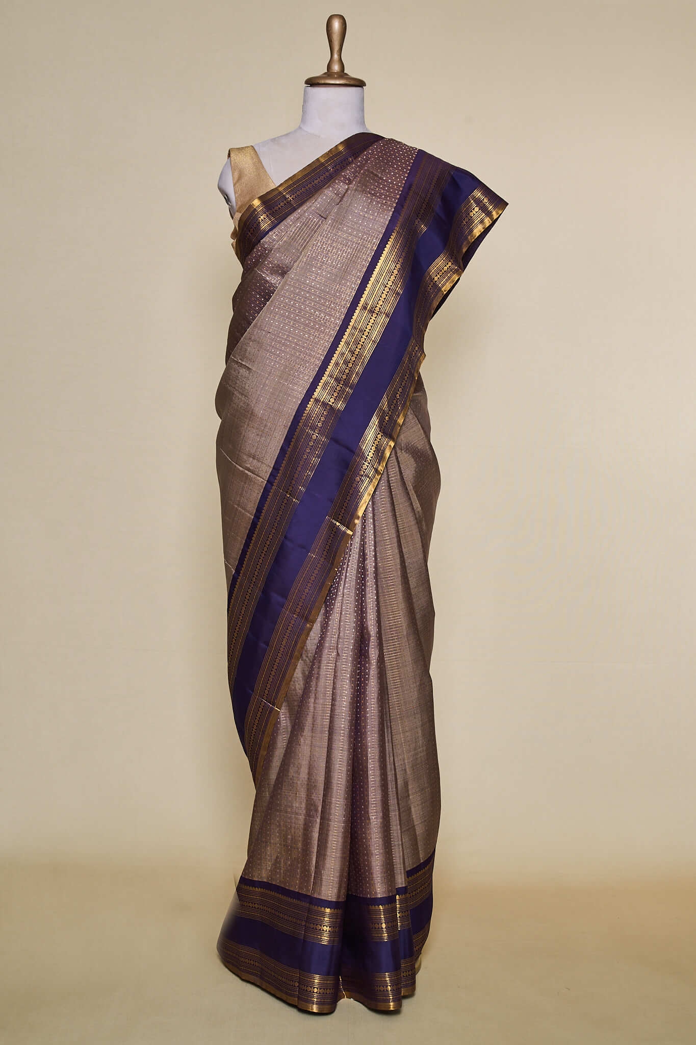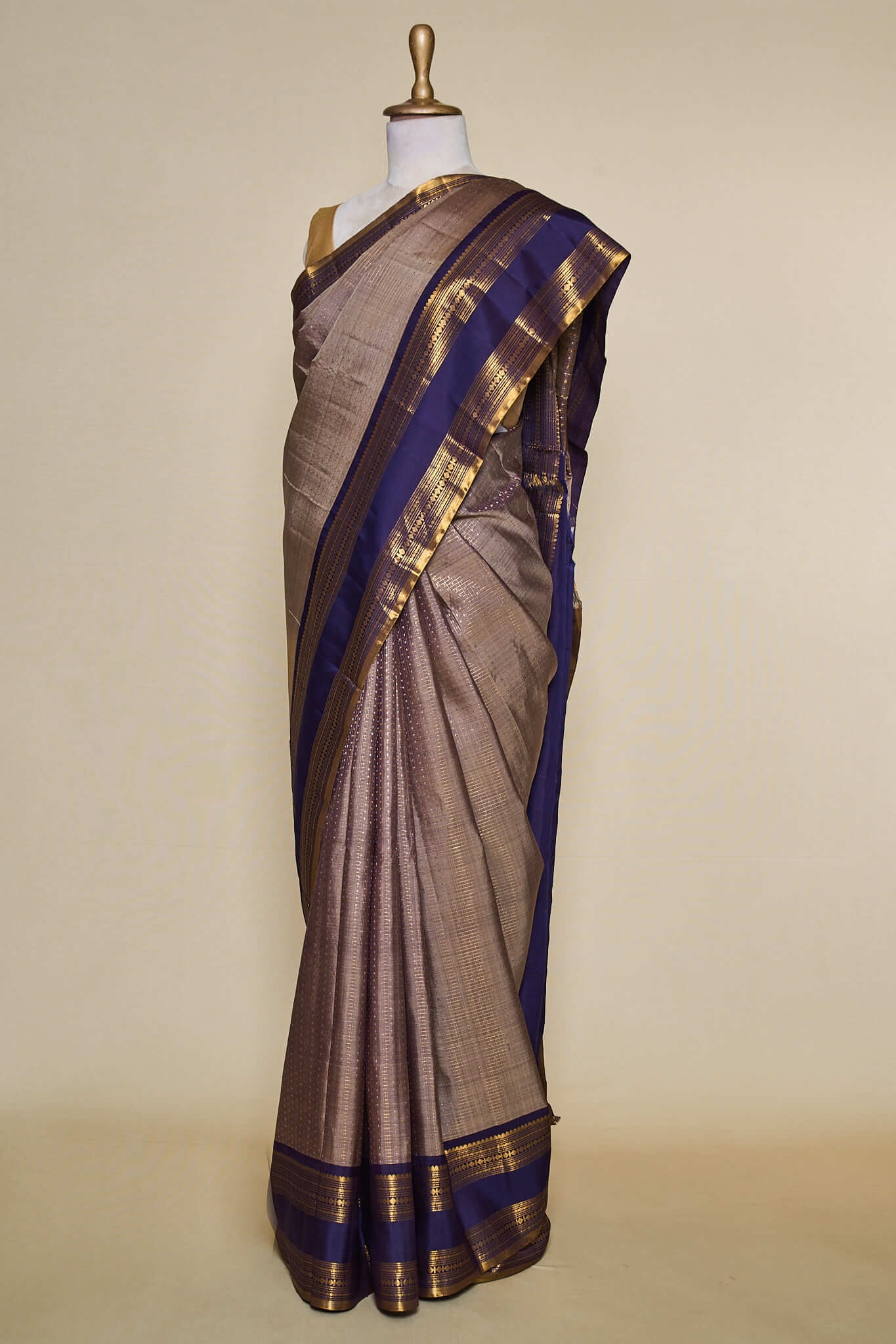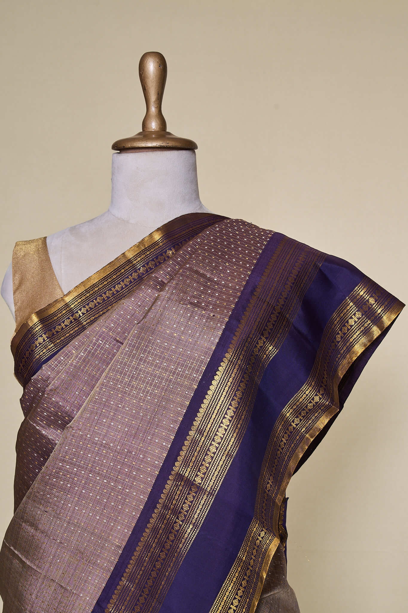 Tortilla And Wine Colour Blouse With Button Butti Kanchipuram Silk Saree