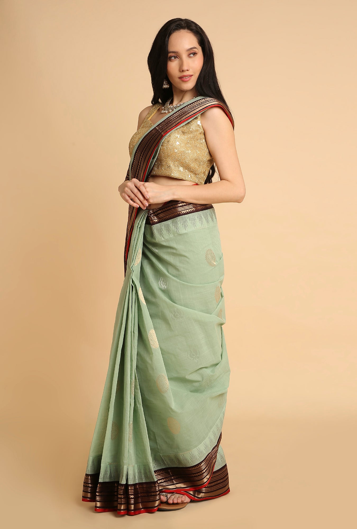 CRUISE TEAL WITH BLACK BORDER SOUTH MAHESHWARI SILK SAREE